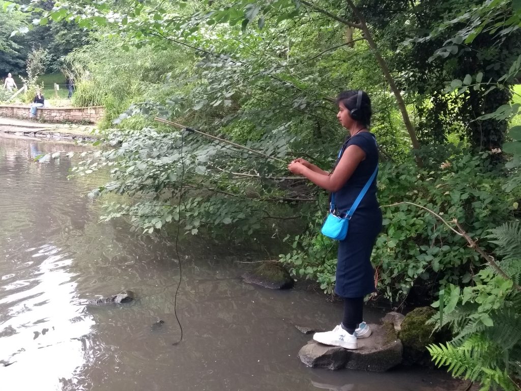 ‘They’ve Not Got Ears, Per Se’ is a sonic and sometimes submerged imagining of what a fish’s world sounds like, maggot eating included – and what they make of us humans above the water. As well as moving above and below a fishery’s pools, this piece also takes us between different fisher people; to hear about what fishing means to them, past prize catches (where fishes are as big as crocodiles), and what it feels like to hook a fish (and to be hooked, as a fish).